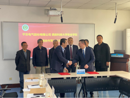 与平安电气股份有限公司校企合作发展座谈会暨战略合作框架协议签约仪式在我校临潼校区举行。平安电气股份有限公司董事长陈重新,副总经理李杰峰、马瑞峰,西北公司经理何勇、尹志超,湖南科技大学资源环境与安全工程学院院长王海桥,我校副校长、皇冠足球