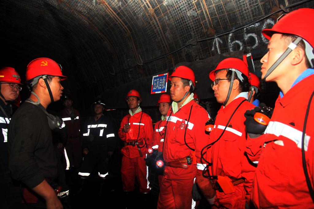在持续的情感酝酿下,实践队员中党员同志们进行了一场特殊的井下宣誓仪式。仪式结束后,张国林激动地表示:“作为一名共产党员,在各级党组织的领导下,我们对每一项工作都做到严谨、务实,在保证员工生命安全基础上,进一步提高生产效率”。实践队员刘五车感慨道:“以前总是听到父母说煤矿发生安全事故,通过今天对梅花井煤矿的参观学习,我觉得现代化矿井的安全系数非常高,这些技术人员、工人在‘预防为主、防治结合、综合治理’安全生产方针下,能够严格遵守规章制度,保障企业平稳发展。”慕亚龙同学说道:“以前我们对煤矿只停留在表面,今天我们有了深入的了解。工人们在艰难困苦的环境下,依然坚守在自己的岗位上,为祖国的能源事业增砖添瓦,弘扬了大国工匠精神。今天我们面对党旗庄严宣誓,我们一定会珍惜大学时光,努力学好专业知识,以硬本领和高素质投身祖国煤炭事业,像煤一样发光发热。”