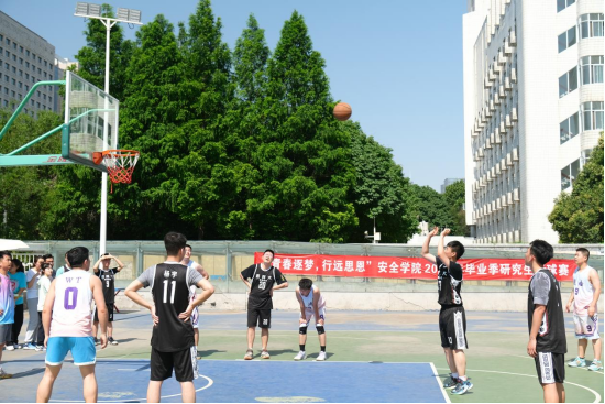 于6月10日上午在雁塔校区北院篮球场举行了“青春逐梦,行远思恩”2023年毕业季研究生篮球赛。学院党委副书记丁铂、分管研究生教育工作的副院长肖鹏、研究生培养办公室主任、研究生辅导员、研究生各党支部书记以及6支参赛球队共计100余人参加了此次活动。