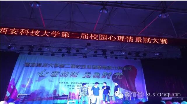5月17日18:30,西安科技大学第二届心理情景剧大赛决赛在临潼校区学生第二俱乐部举行,陕西普通高校心理健康教育培训与研修基地主任郑林科、西北工业大学心理中心主任张洪英、学工部副部长翟海刚、艺术学院党委副书记吕勤勇、学工部心理健康中心主任王军妮担任大赛评委,各学院辅导员及学生代表500余人观看了比赛。