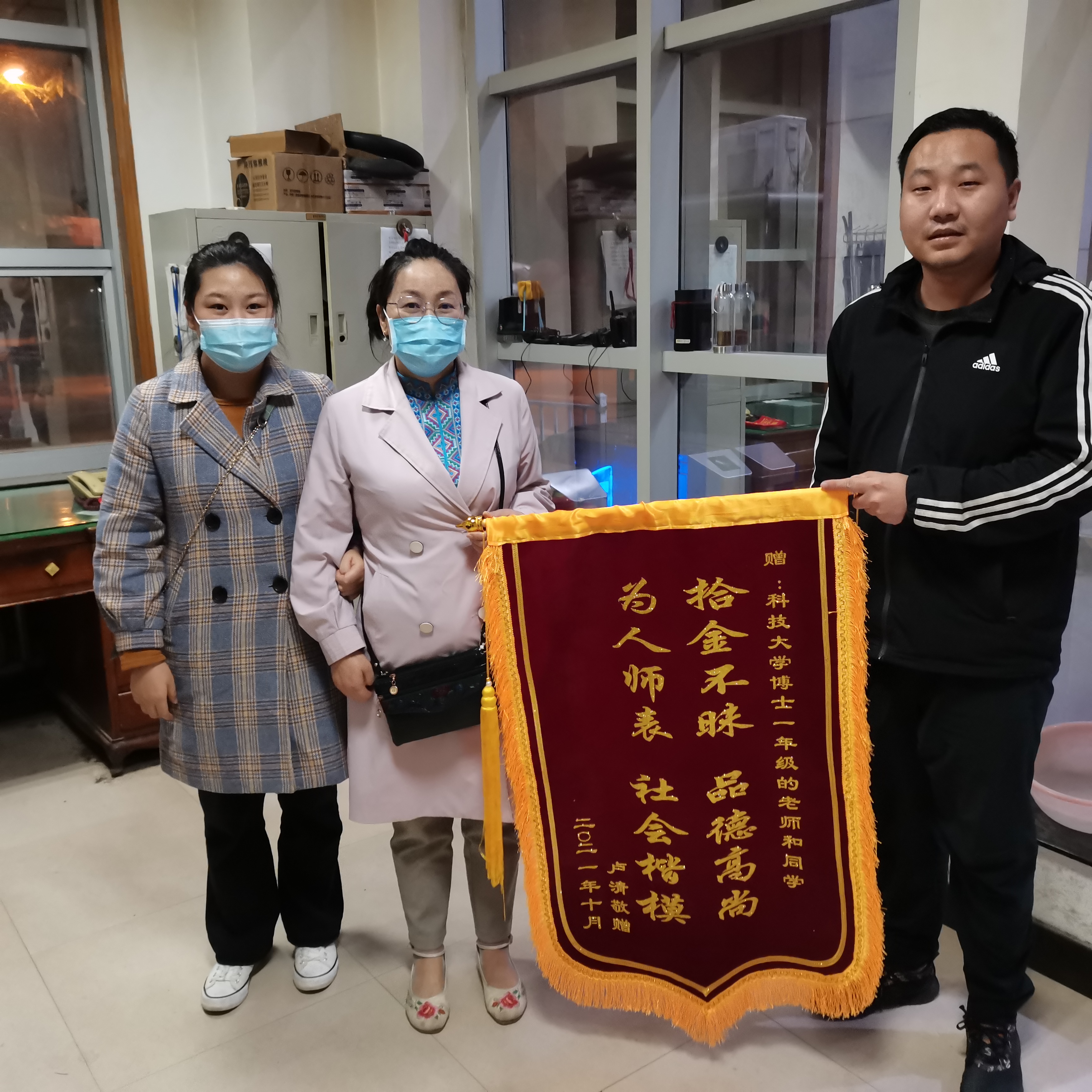 丁洋老师拾获手机送还 失主送来锦旗诚挚感谢